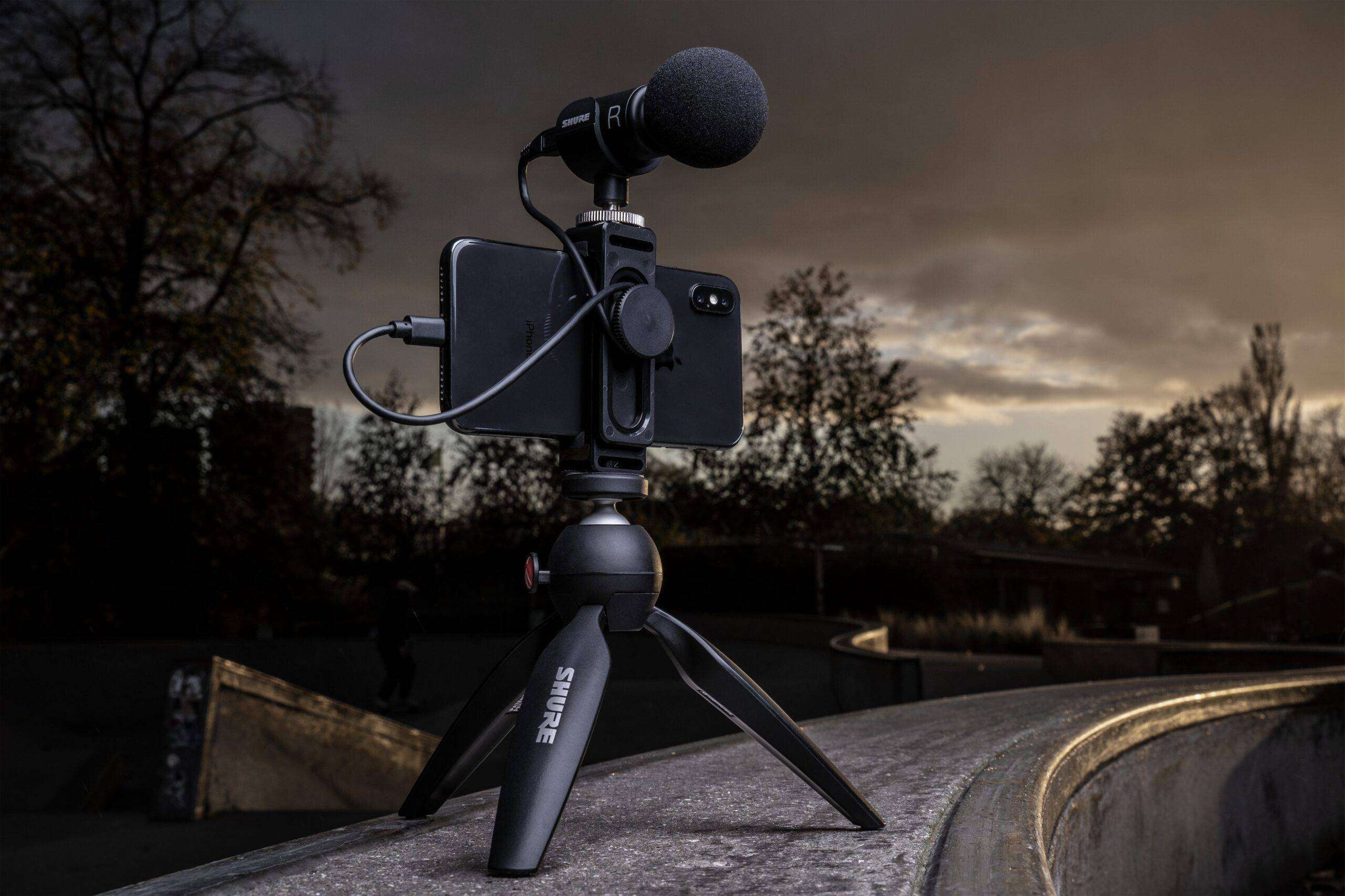 MV88+ Video Kit:Best This one goes out to the mobile content makers among us: the bloggers, the videographers, the explorers, and the like. Any smartphone can be upgraded to a high-quality mobile audio and video rig with the help of the MV88+ Video Kit. For superior compatibility and connectivity, the kit comes with a Manfrotto® PIXI tripod, phone clamp, and mount, as well as iOS and USB-C cables. You can customize the MV88+ with Gain, Limiter, Compression, EQ, and a Monitor Mix by downloading the ShurePlus MOTIV Audio or Video App.